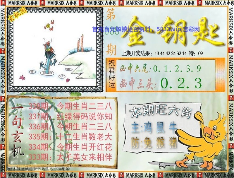 338期一字記曰:【察】 见微知著,明察秋毫,法眼岂容博大雾。袖手旁观,心中有数,难越雷池迈半步。 玄机测字《则》 解:花里双双乍归燕:花里双双解双肖虎狗马猴鼠龙。 综合取肖:虎狗马猴鼠龙 综合两波:蓝波+红波 |